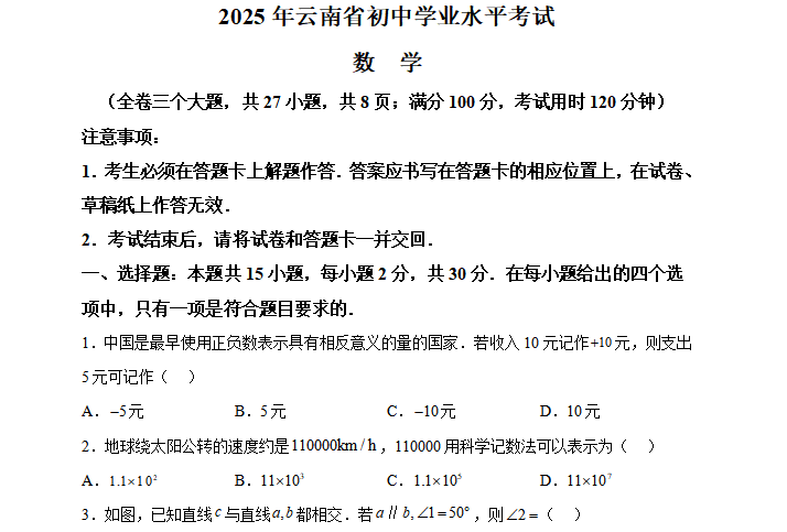2025年中考数学真题&答案解析(知识点整理)